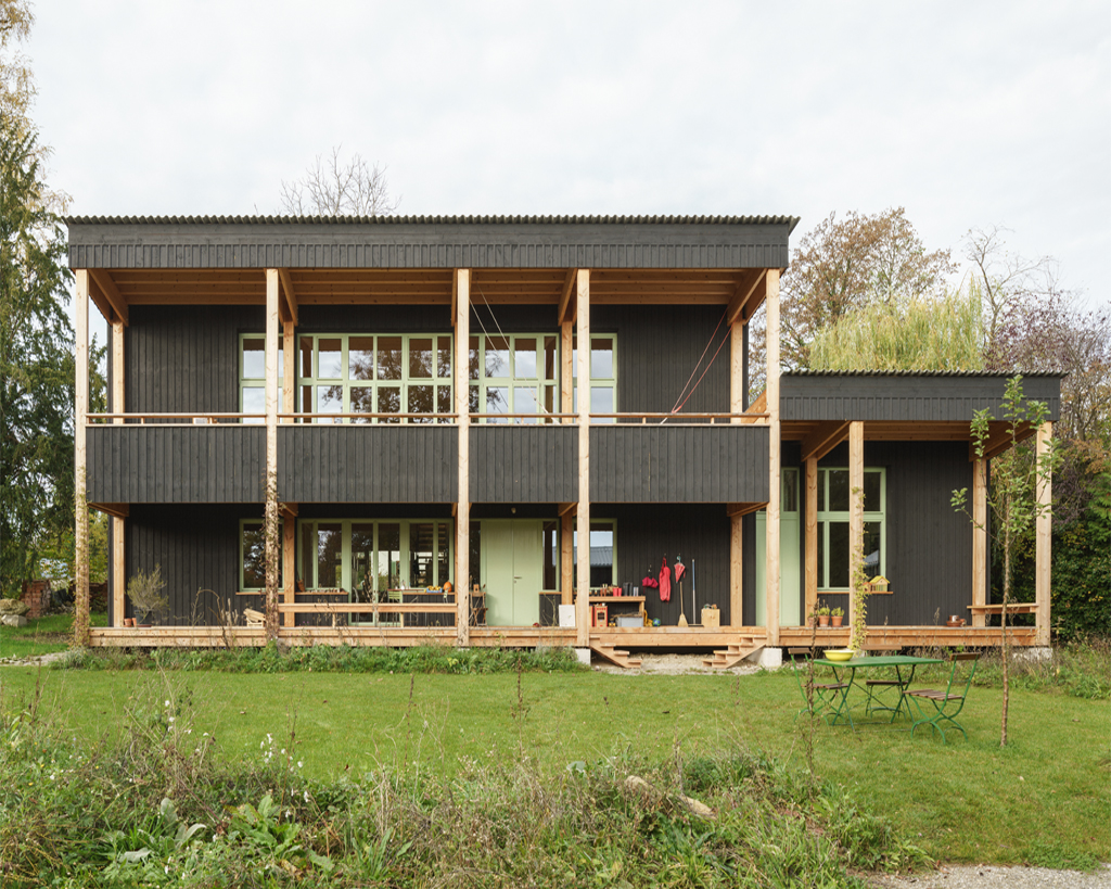 Die massive und diffusionsoffene Bauweise aus regionalem Holz, die regenerative Wärmegewinnung, die langfristige Nutzungsflexibilität als Mehrgenerationenraum - auch in unterschiedlichen Kombinationen von Wohnen und Arbeiten, sowie die bewusst eingeplante Alterungs- und Reparaturfähigkeit aller Materialien und Konstruktionen bei gleichzeitigem minimalen Einsatz von Gebäudetechnik schafft einen langfristig nachhaltigen Lebensraum mit hohem Aneignungswert.