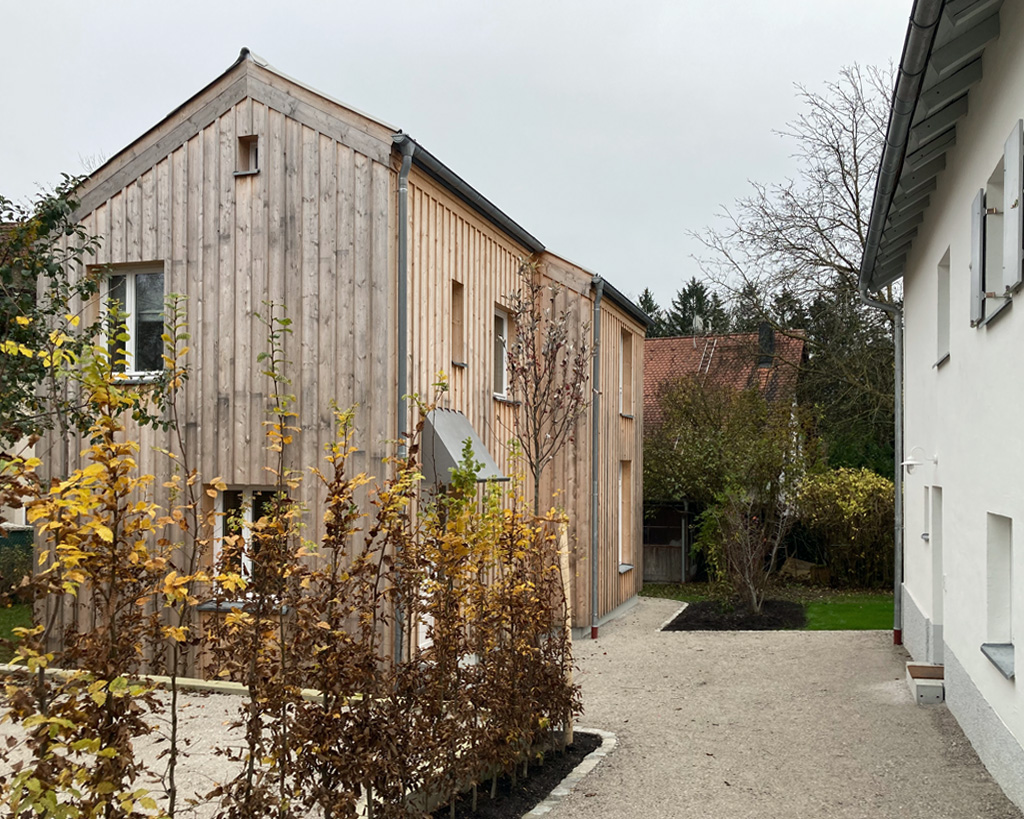 Ein Einfamilienhaus aus den 1930er Jahren soll saniert werden, während das Grundstück gleichzeitig auch noch bauliche Ausnützungsreserven besitzt. Unser Entwurf beinhaltet im Sinne einer integralen Planung und Mehrwerterzielung für die Bewohnerschaft und für das ganze Grundstück neben der Totalsanierung des Bestandsgebäudes auch die Erstellung eines neuen kleinen Wohnhauses und die Gestaltung des Freiraumes mit Garten, Hof und alter Remise. Das Ziel war eine Ressourcen schonende und sozial verträgliche Nachverdichtung mit vielfältigen, privat bis gemeinschaftlich nutzbaren Aussenräumen.