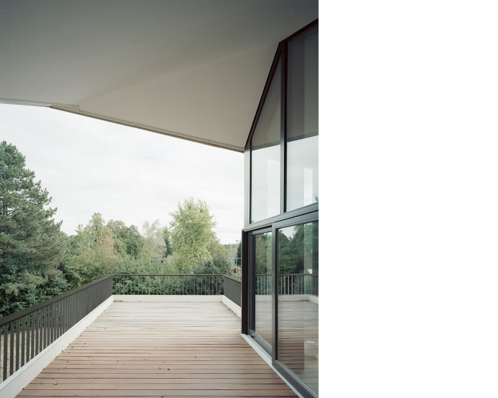 Das Haus am Ammersee steht auf einem grossen parkähnlichen Grundstück, umgeben von hohem und altem Baumbestand auf einem Höhenzug entlang des Ammersees. Das Haus bietet Raum für eine 4-5 köpfige Familie und ist in Zukunft aufteilbar in 2 verschieden große Wohneinheiten. Mit der Positionierung auf dem Grundstück und der Aussenraumgestaltung schaffen wir in dem weitenläufigen Freiraum bewusst unterschiedliche Räume und Situationen, die sich im funktionalen Bezug zum Gebäude, in ihrer Privatheit, ihrer landschaftlichen Qualität und ihrer Besonnung über den Tagesverlauf hin erkennbar differenzieren. Durch die spezielle Dachform gliedert es sich aus der Entfernung ein in die umgebende Nachbarschaft. Aus der Nähe bekommt das Gebäude eine unerwartet skulpturale Erscheinung. Das Gebäude ist eine Holzständerkonstruktion und wird mit einer Sole-Wasserpumpe geheizt. Es erreicht den Standard „Niedrigenergiehaus“.