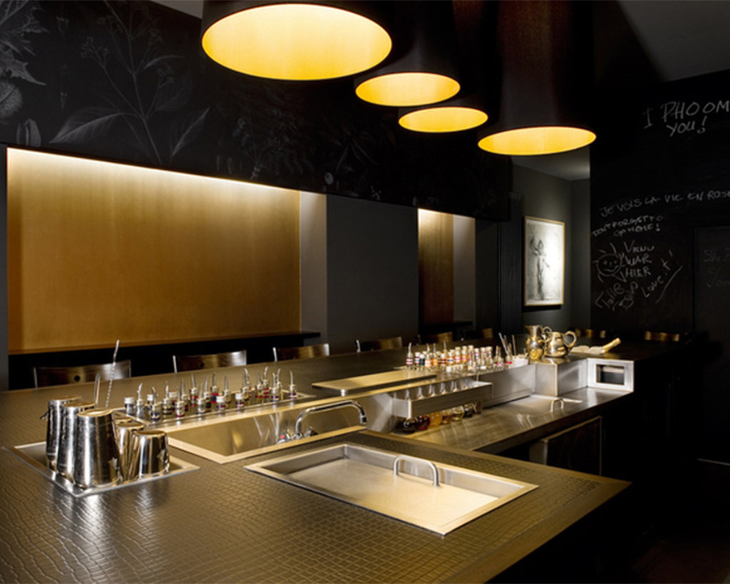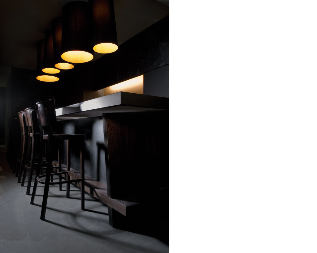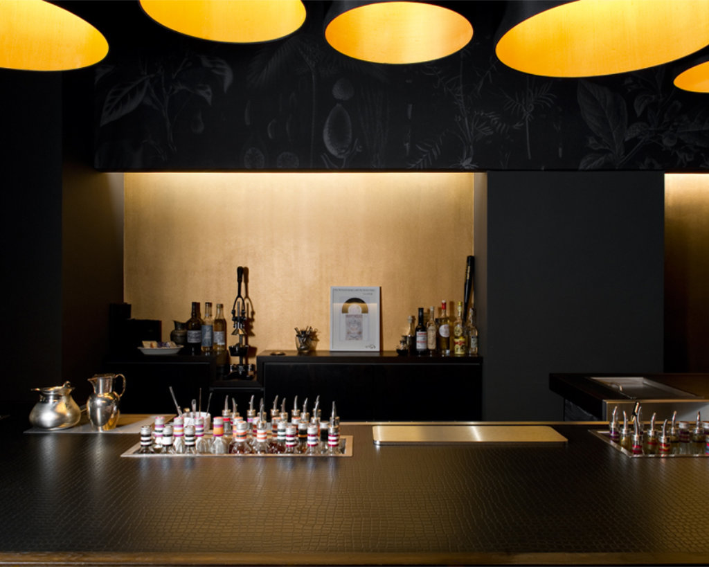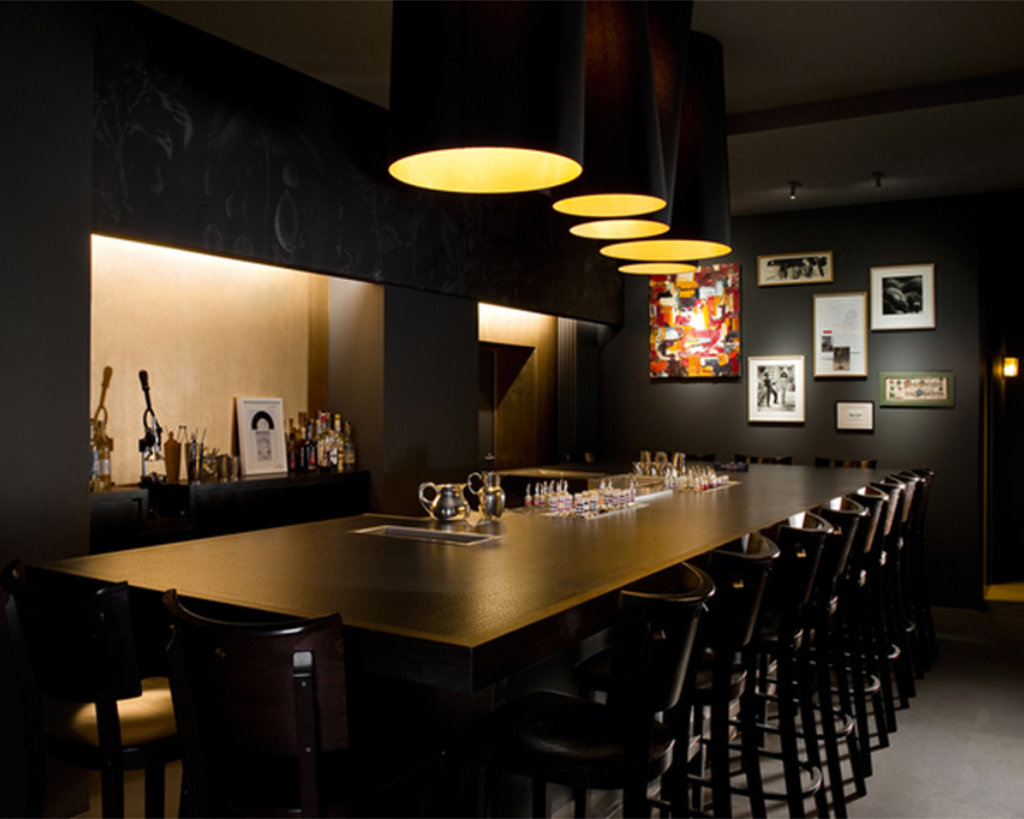 Die Räume der Buck & Breck Cocktail Bar finden sich in einer besonderen räumlichen Konstellation in Berlin Mitte wieder; das ehemalige Ladenlokal im Blockrand neben der Polizeiwache im Plattenbau mit einem Hinterhof, der an Brooklyn der 1980er erinnert. Etwa Zweidrittel der Räume wurden umgebaut, der Rest dient nutzungsflexibel als strategischer Erweiterungsraum für Events, oder zu einem späteren Zeitpunkt als Ausbauoption. Grundidee der räumlichen Konzeption der Bar ist der Bartisch. Er steht als einziges Möbel der Bar im Mittelpunkt. Seine Wahrnehmung als der zentrale Ort in der Bar wird durch das Beleuchtungskonzept mit warmem und kaltem Licht pointiert. Der Bartender und die Gäste teilen sich diesen grossen und massiven Holztisch. Das ermöglicht dem Bartender in der ca. 15 Gäste fassenden Bar jederzeit den persönlichen Bezug zu seinen Gästen. Die Nuancen zwischen privat und öffentlich, die man aus der Benützung von Stadträumen kennt, wurden auf den Massstab des Barraumes transferiert und mit innenarchitektonischen Mitteln umgesetzt. Es entstehen auf kleinem Raum gleichzeitig eine Vielzahl an verschiedenen Atmosphären. Von Aussen ist die Bar nicht unmittelbar erkennbar. Ein in seiner Möblierung veränderbarer Raum für Kunst ist der Bar vorgeschaltet und verändert immer wieder die Interaktion der Bar mit dem öffentlichen Raum der Stadt.