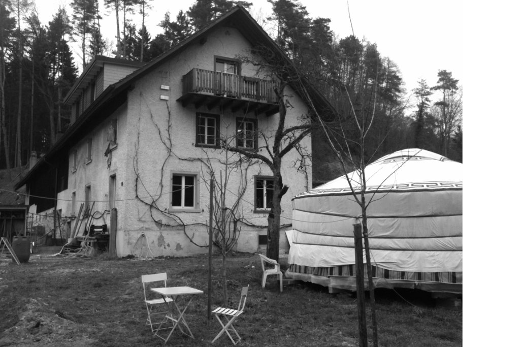 Der Hof Grienen in der Nähe von Winterthur Seen bietet diverse alternative Wohnformen. Als ehemaliger Bauernhof steht er auf der Anhöhe eines zwei Hektar grossen Grundstückes und bietet mit einer Groß-WG Wohn- und Lebensraum für rund 20 Personen - im Haus, in umgebauten Bauwagen oder mongolischen Jurten. In enger Zusammenarbeit mit der Bauherrschaft wurde ein Projekt entwickelt, bei dem mehr Wohnraum für Familien und eine bessere sanitäre Infrastruktur für WagenbewohnerInnen geboten werden. Der ehemalige Stall wurde zu einer Vierzimmer-Familienwohnung umgebaut und eine kompakte Nasszelle geschaffen, die den Wagen- und JurtenbewohnerInnen eine neue sanitäre Infrastruktur bietet. Die Konstruktion der Wohnung im Erdgeschoss wurde akustisch entkoppelt vom Konzertraum im Obergeschoss. Das Projekt wurde mit einem hohen Grad an Eigenleistung der BewohnerInnen umgesetzt. Dementsprechend ist die Konstruktion einfach konzipiert und unterstützt durch seine Gestaltung und den Einsatz von einfachen, aber wertigen Materialien die collageartige Erscheinung des gesamten Hof-Ensembles.
