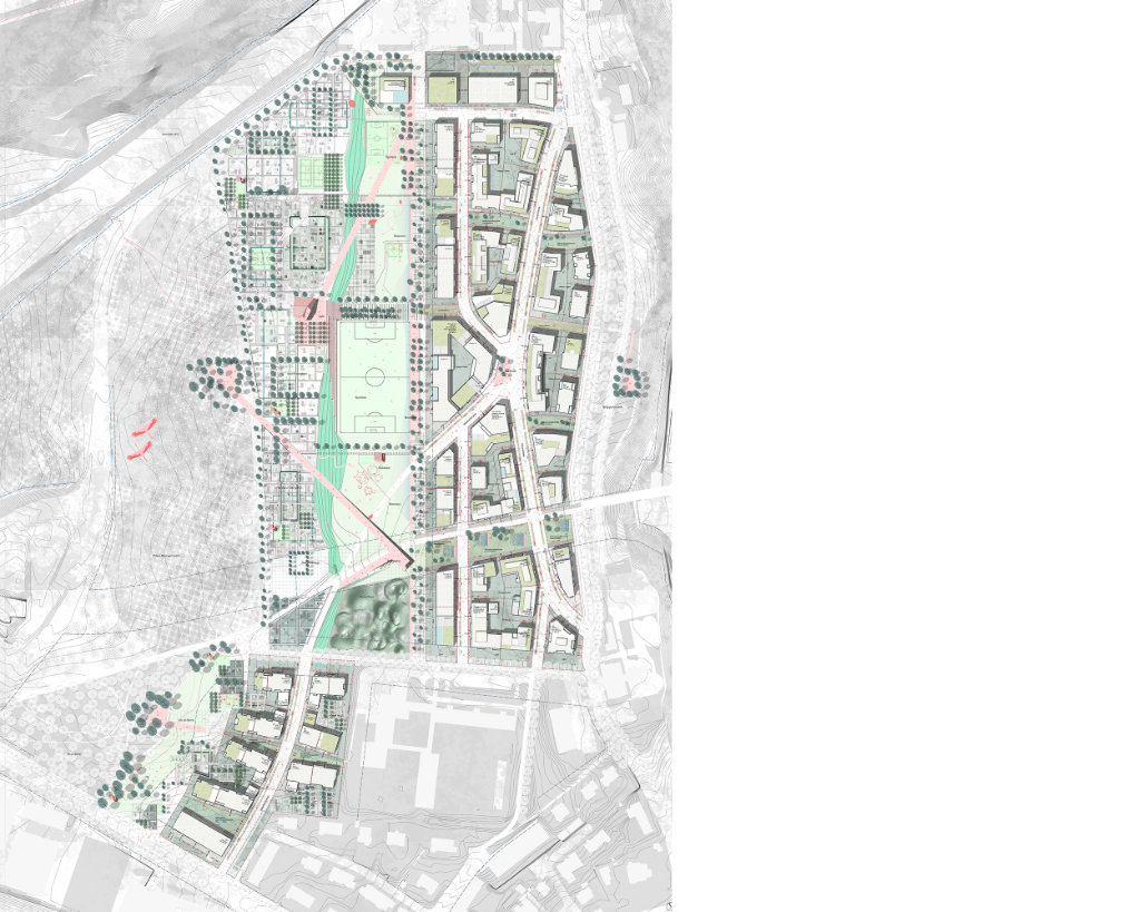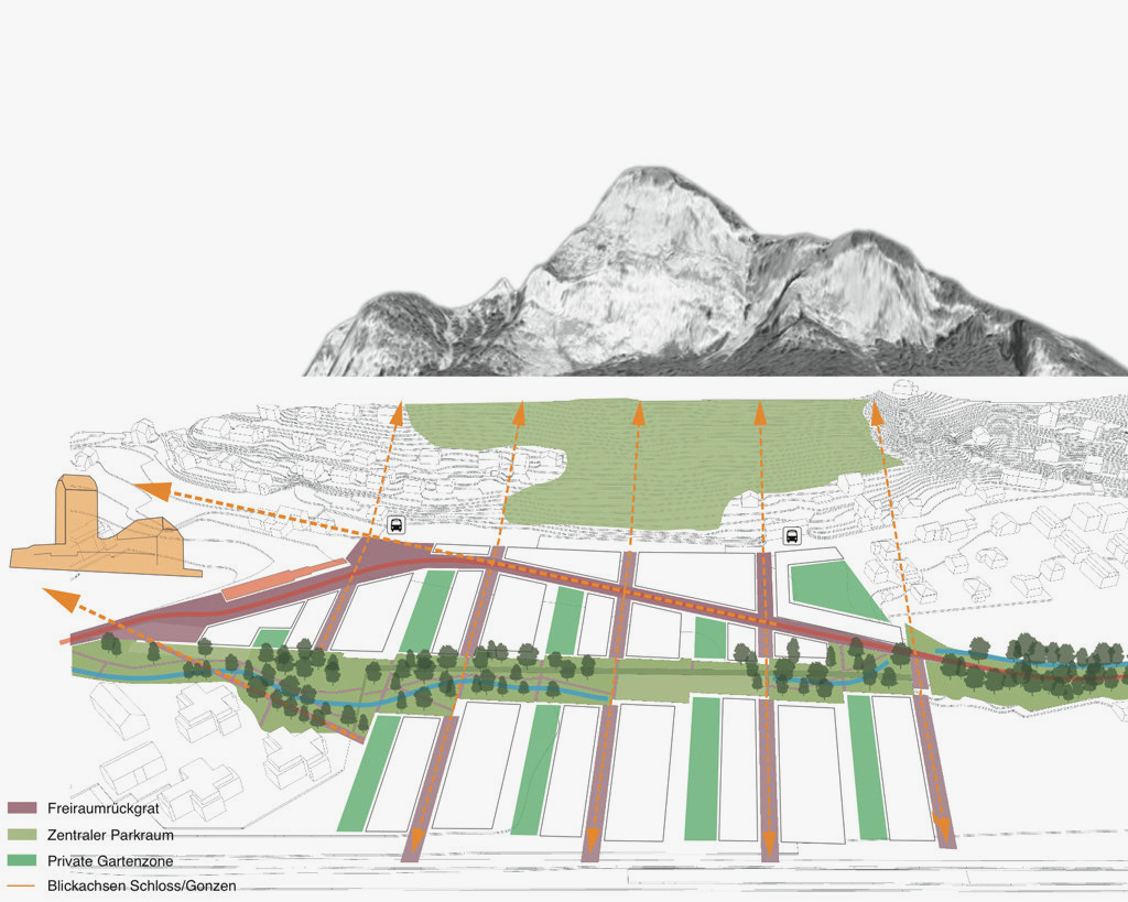 Das Planungsgebiet «Malerva Nord» liegt am Fusse des Gonzens im Nordosten der Gemeinde Sargans und weisst ca. 10ha auf. Eigentümerin des Areals ist die Eisenbergwerk Gonzen AG. Auf dem Areal, das momentan hauptsächlich gewerblich für Logistik und Kiesaufbereitung benutzt wird, wird mittel- bis langfristig das größte gemischte Wohnquartier der Gemeinde Sargans entstehen. Das Ziel unserer Entwicklungsstrategie ist es, ein Quartier zu schaffen, das nur an diesem Ort existiert. Es soll entlang von qualitativen und quantitativen Leitlinien über die nächsten Jahre organisch wachsen. Bestimmende identitätsstiftende Elemente für den Entwurf der robusten städtebaulichen Grundstruktur des Areals sind der Berg Gonzen, das Schloss, ehemalige Industriestrukturen und Besonderheiten der umgebenden Landschaft. Der räumlich-funktionale Masterplan fasst das Freiraum- und Bebauungsregelwerk zusammen und definiert innerhalb der Nachbarschaften eine Mischung von Gebäudetypen. Dies bildet die Basis für eine lebendige und nachhaltige Quartierentwicklung und bietet gleichzeitig gute Voraussetzungen für eine sinnvolle Etappierung mit Spielräumen in der Dichte und für Unvorhergesehenes. Die Grün- und Freiräume gliedern sich in einen zentralen, gemeinschaftlichen Bereich und individualisierte Aussenräume in den Nachbarschaften. Das feinmaschige Netz für Langsamverkehr stärkt die räumliche Vernetzung, Zugänglichkeit, Übersicht und Lebendigkeit. Basierend auf einer breiten Diversität schafft dies eine sanfte Urbanität.