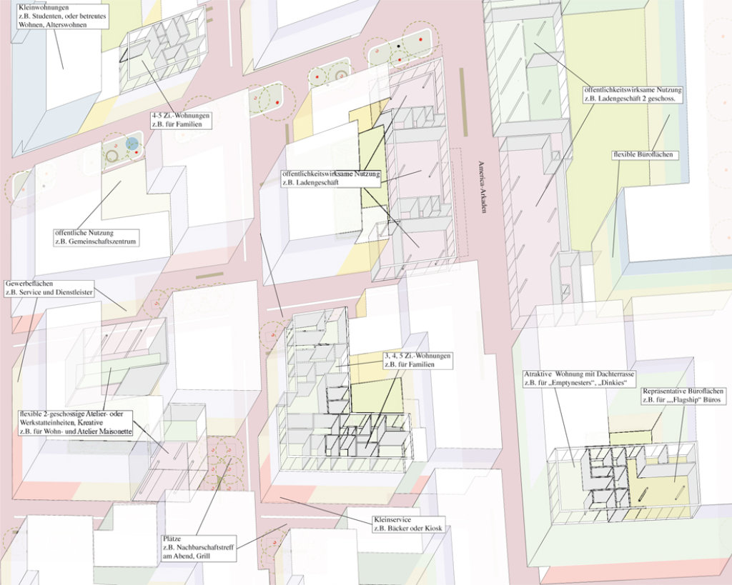 - Entwickeln eines gemischten und lebendigen Stadtquartiers