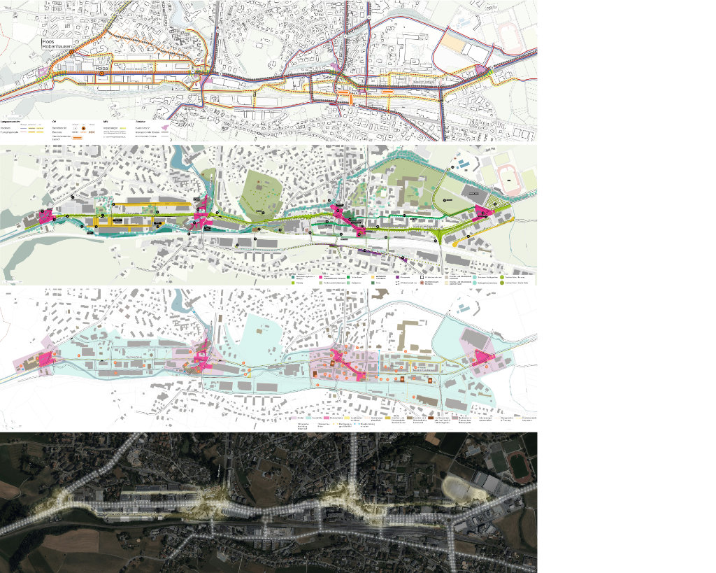 „In Wetzikon fehlt eine übergeordnete städtebauliche Vision, die eine aktivere und stringentere Planung erlauben würde.“ (Zitat Stakeholder) Die Studie Fokus 1 legt die Basis für weitere Fokus Studien. Ziel ist eine dynamische Planungsstruktur, die kurz- und langfristig greift. Im Rahmen der Studie Fokus 1 hat ein multidisziplinäres Team unter der Federführung von BASK in enger Zusammenarbeit mit der Stadtplanung Wetzikon und einer Kommunikationsagentur eine übergeordnete Vision für den Stadtraum Unterwetzikon entwickelt, die auf den vorhandenen Planungen und dem REK aufbaut. Es wurden neue zusammenhängende Verkehrs-, Freiraum-, Städtebau- und Beleuchtungskonzepte erarbeitet und Detailräume vertiefter und exemplarisch als Richtprojekte entworfen. Dabei spielte die Einbettung in ein übergeordnetes Kulturlandschaftskonzept eine wichtige Rolle. Im Verlauf dieses Prozesses wurden u.a. Schatzkarten für das Gebiet Unterwetzikon entwickelt und damit eine partizipative Planungskultur angestossen, welche die Stakeholder und ihre Anliegen einbezieht. Basierend auf der übergeordneten Vision und dem Verkehrs-, Freiraum-, Städtebau- und Beleuchtungskonzept wurde ein Katalog erarbeitet, der konkrete Sofortmassnahmen für die kurz-, mittel- und langfristige Umsetzung zur Verfügung stellt. Die Resultate der Studie Fokus 1 werden in den weiteren Fokus Studien miteinbezogen und weiterentwickelt, so dass die Basis für eine flexibele, wirksame und vernetzte Planung entsteht, die in der Bevölkerung verankert ist und von ihr mitgetragen wird. Der Stadtrat Wetzikon hat die Massnahmen gesichtet, bewertet und die Realisierungsmöglichkeiten und die Umsetzung priorisiert.