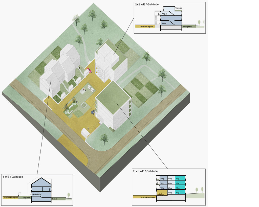 DURCH EINEN PRÄZISEN MIX VON GEBÄUDE- UND FREIRAUMTYPEN FÖRDERN WIR SOZIALE DIVERSITÄT UND RÄUMLICHE ANEIGENBARKEIT.